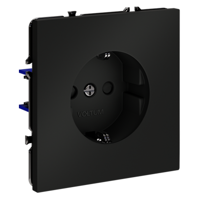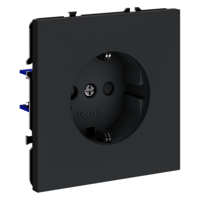 Розетка встраиваемая VOLTUM S70 с заземлением 16А, (черный матовый)