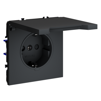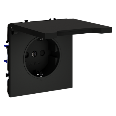 Розетка встраиваемая VOLTUM S70 с заземлением и защитными шторками, 16А, (чер...